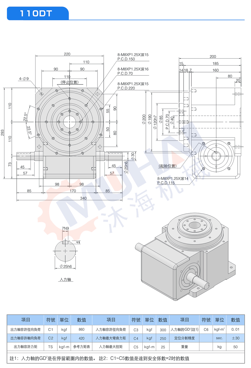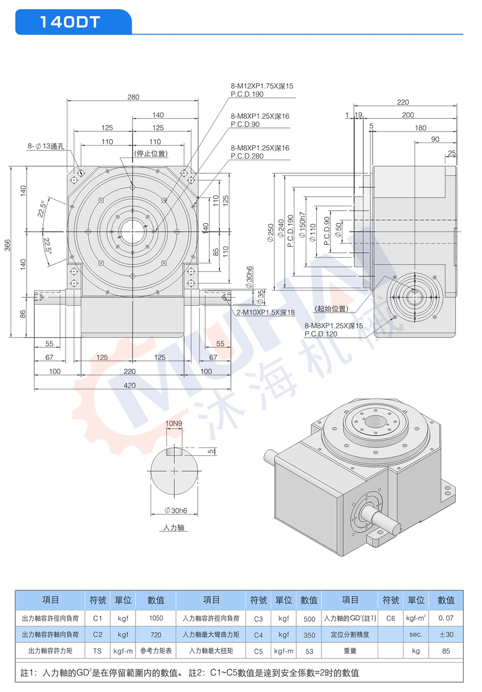 此系列機種之尺寸設計特性輿凸緣型功能相似,于驅動運轉上可承受超大軸向負載及垂直徑向壓力,在輸出端有一凸起固定盤面及大孔徑空心軸,可搭配設置動態、靜態自動化周邊設備,可將動力源之電、油、氣等管路置于空心孔內,此系列機種廣泛應用重負載、直結自動化設備之各類種機構及產業機械等,作同步自動化間歇驅動。